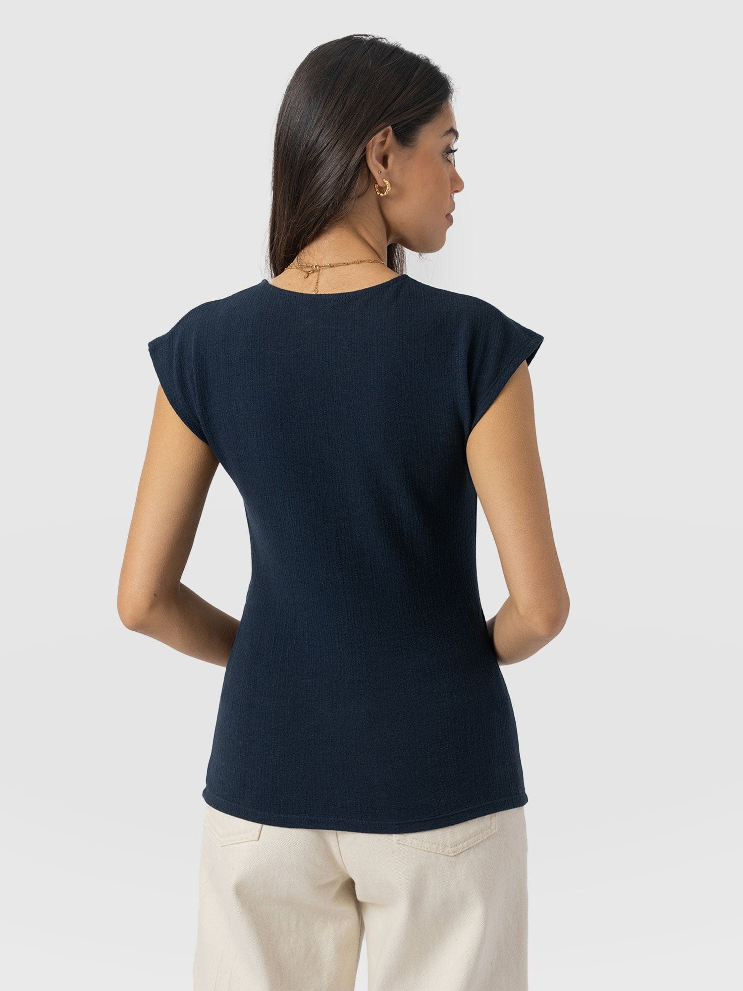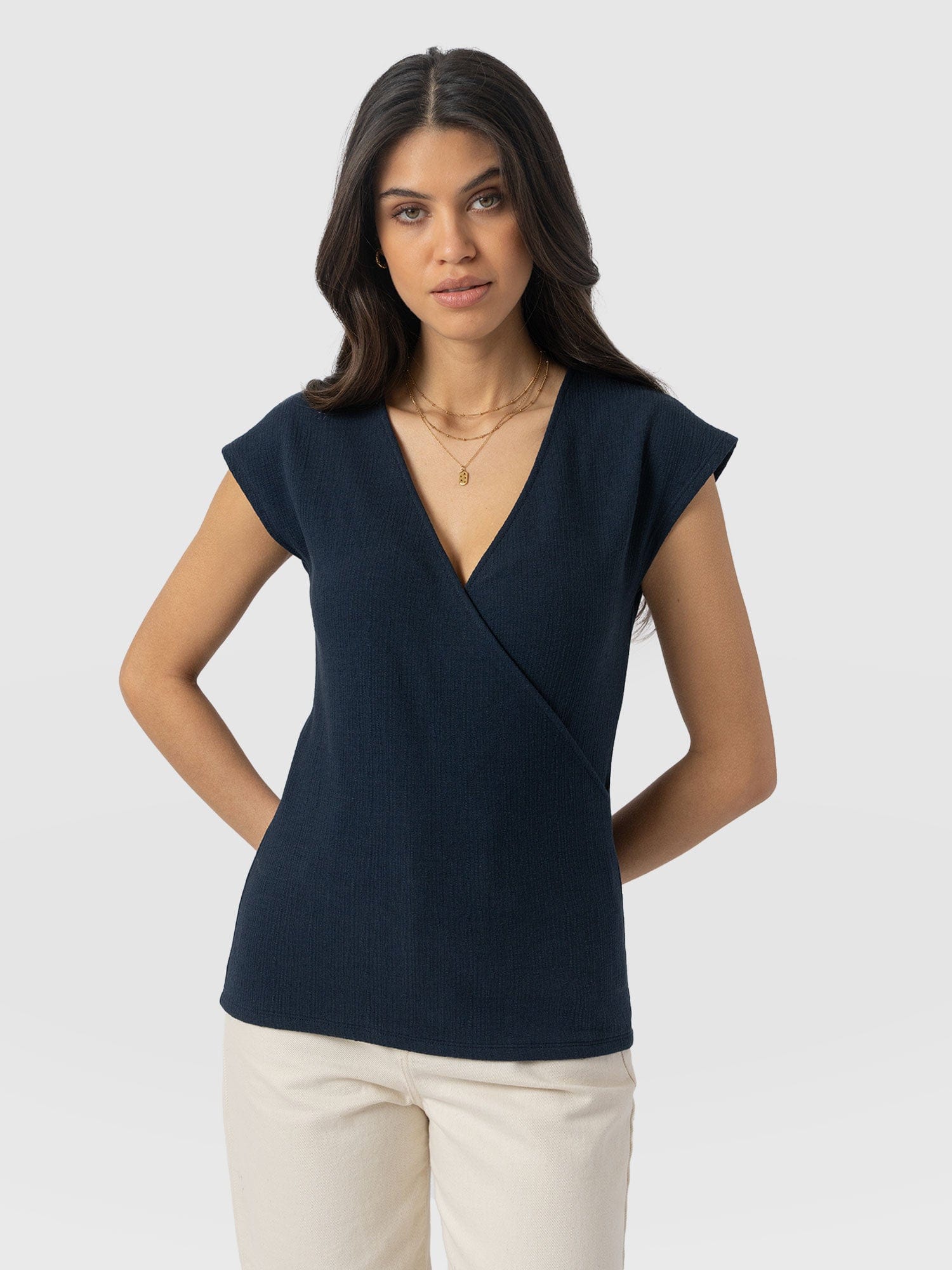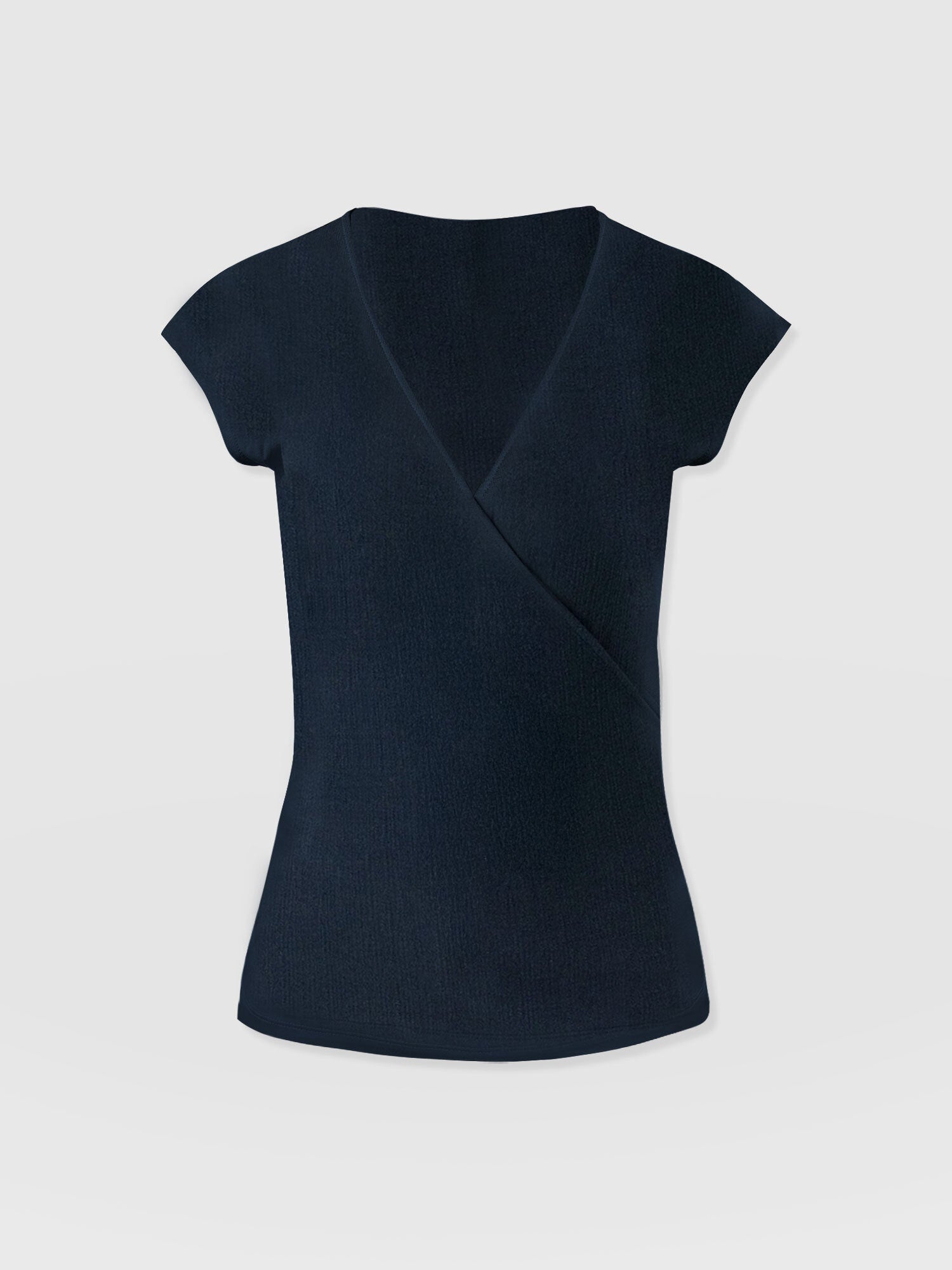 Meet the Rosa Wrap Tee in Navy: the perfect accompaniment to your capsule wardrobe and an instantly elegant design handmade from a lightly textured organic cotton jersey. It’s topped by a skin-bearing V-neckline and features a figure-framing wrap silhouette. Style yours by tucking it into a pair of jeans or letting it hang loose over your favourite midi skirt.