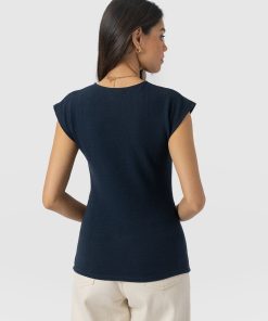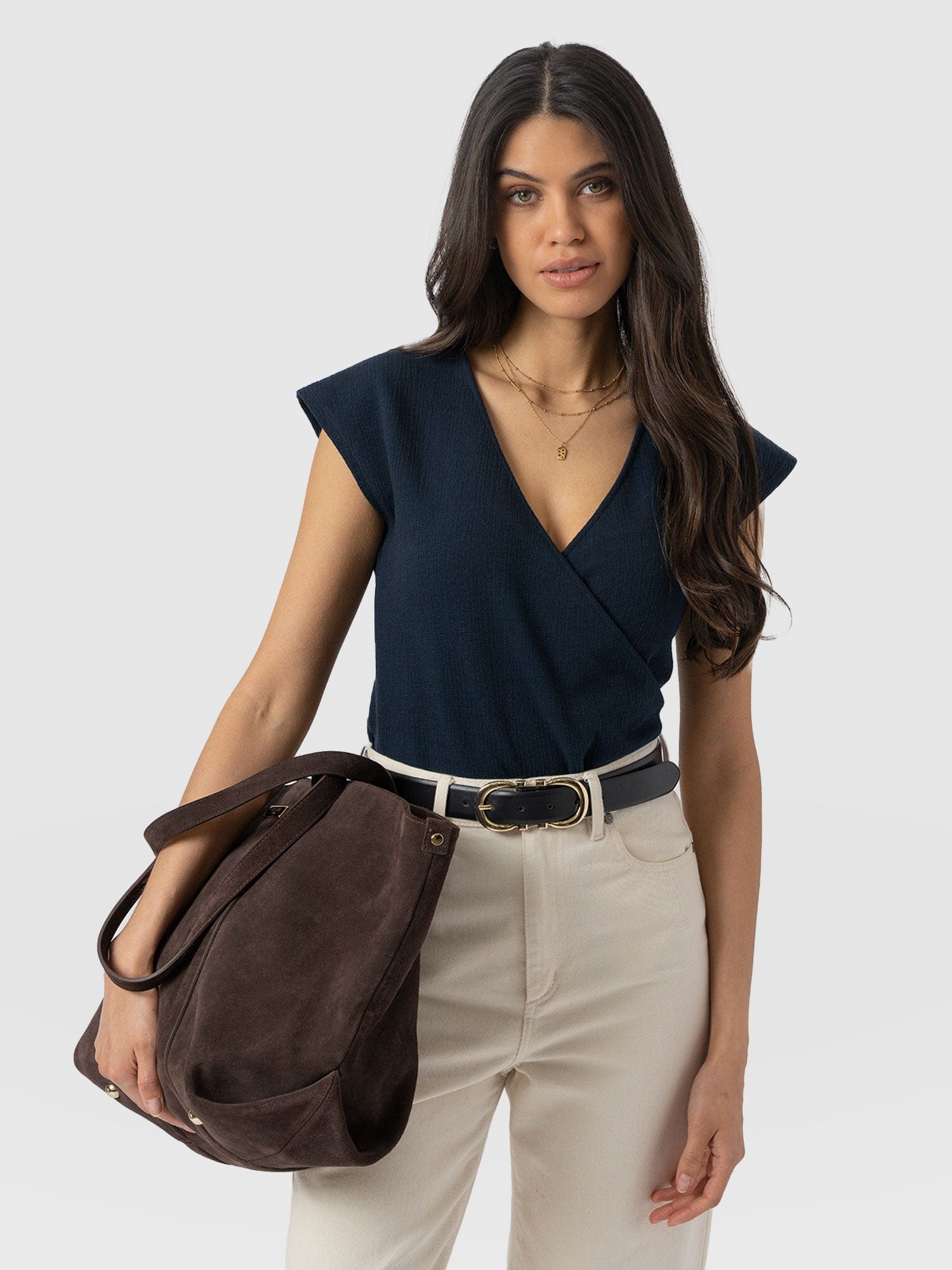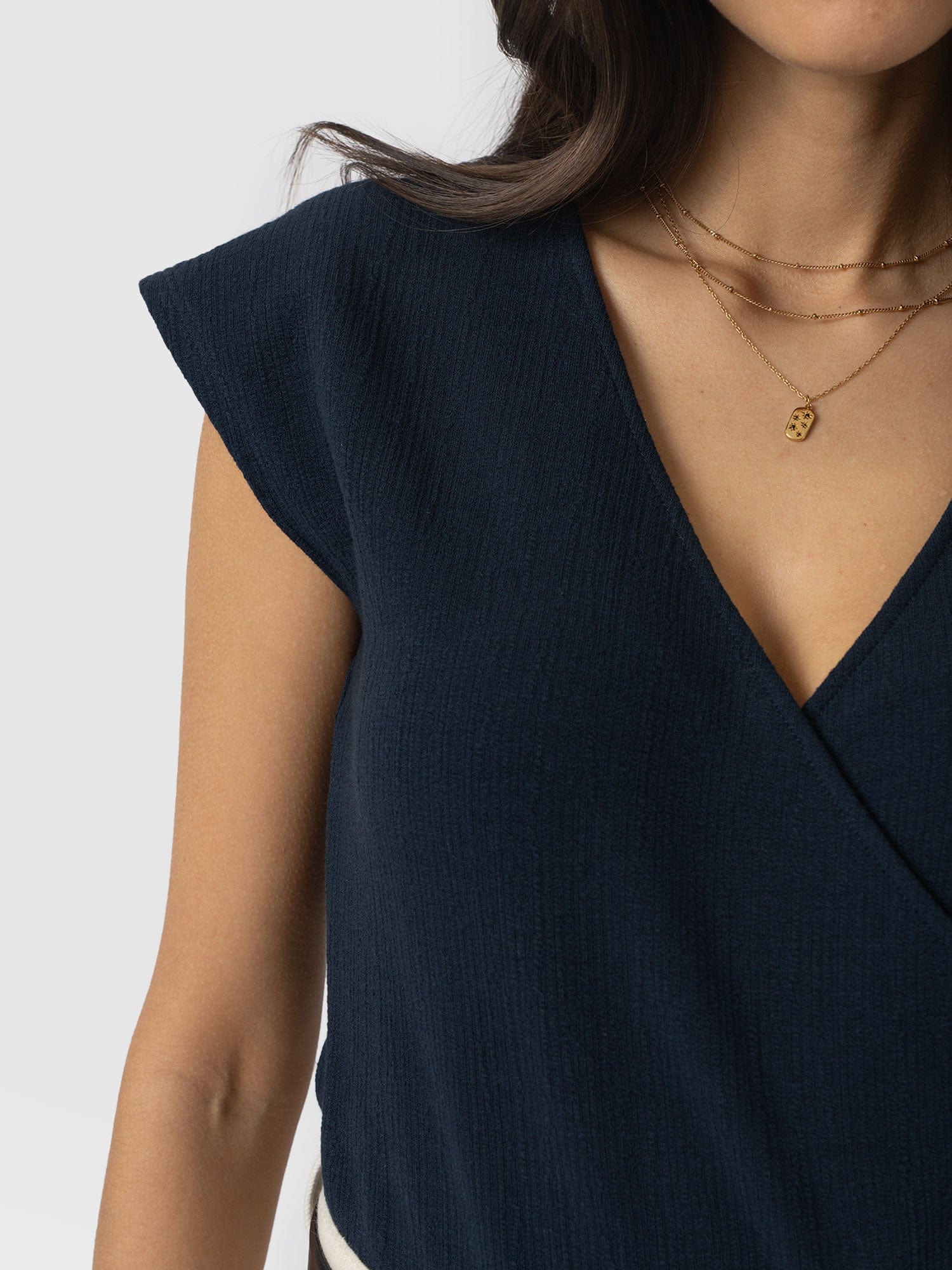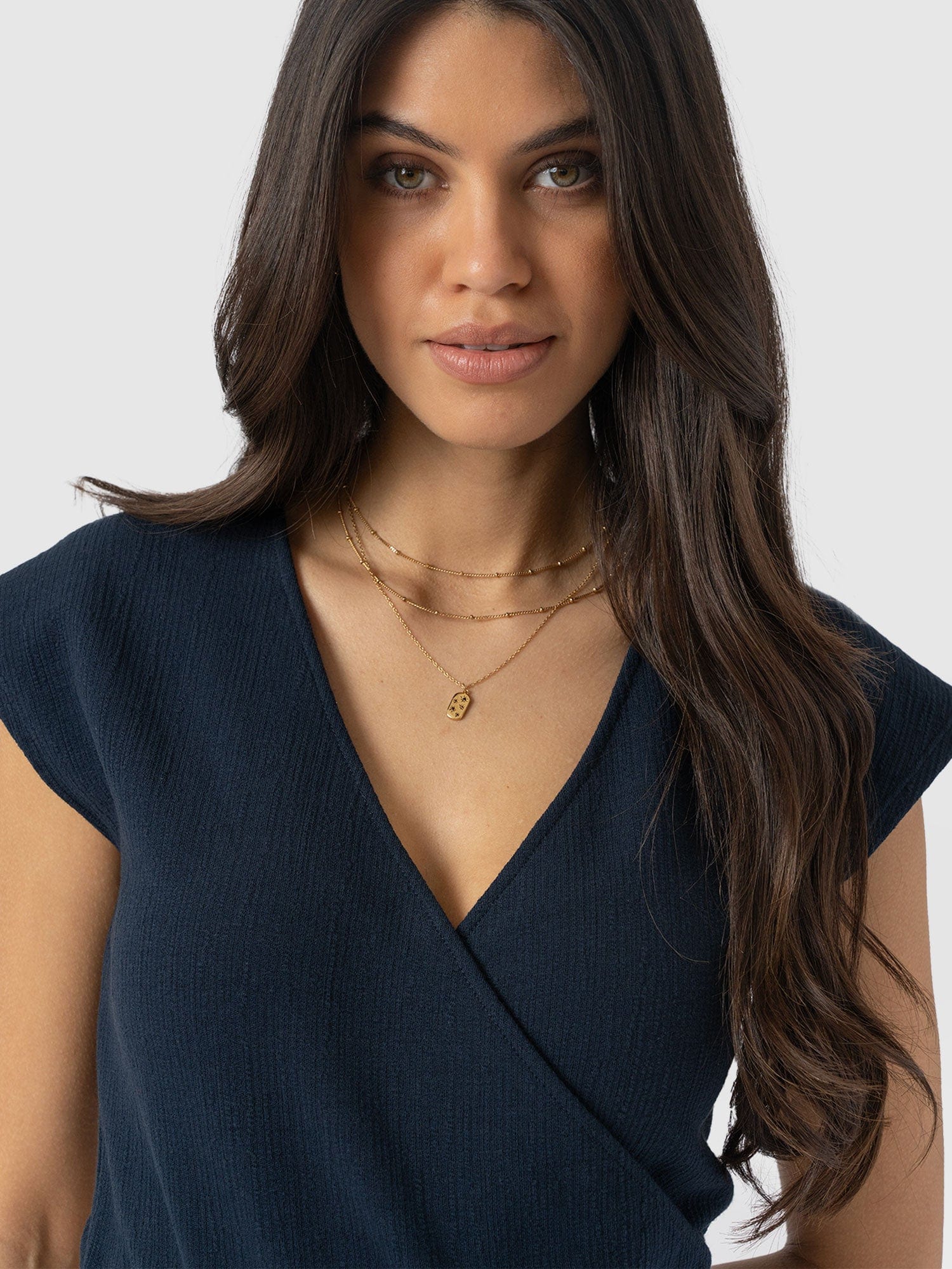 Meet the Rosa Wrap Tee in Navy: the perfect accompaniment to your capsule wardrobe and an instantly elegant design handmade from a lightly textured organic cotton jersey. It’s topped by a skin-bearing V-neckline and features a figure-framing wrap silhouette. Style yours by tucking it into a pair of jeans or letting it hang loose over your favourite midi skirt.