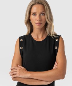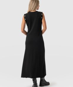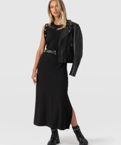 A failsafe dress for any occasion, the Rowan Dress in Black Eyelet is handmade in our family-run studios in Europe using a stretch-infused jersey for an instantly comfortable feel. It’s stitched to a slim fit with a crew neckline that falls to a sleeveless frame where silver eyelets decorate the sides. Wear yours with chunky boots with a grunge-enthused look.