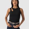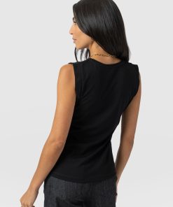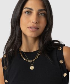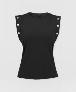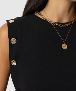 A staple T-shirt to add to your everyday collection, The Rowan Tee in Black is a casual design made from soft and gentle cotton. It’s shaped to a relaxed fit with a sleeveless frame to add some edge to the classic crew neck silhouette. At the sleeves, gold-toned molten buttons trace up the sides for a sophisticated touch. Pair yours with the Finsbury Pant or Wide Leg Jeans and your favourite trainers for a comfortable and always-on-trend look.