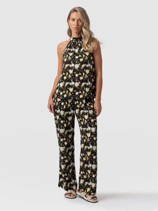Our timeless Rowan Wide Leg Pants in Black Daisy Floral will have you stepping out in style. They’re handmade in our planet-friendly eco-viscose and trimmed with pockets to keep all your prized possessions safe. Then, they’re topped with an elasticated back waist for day-to-day comfort, and pinned by a front seam and box pleat for an elegant appearance. For maximum impact, wear them with our matching Tilda Halter Neck and heeled sandals to complete the look.