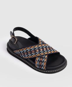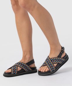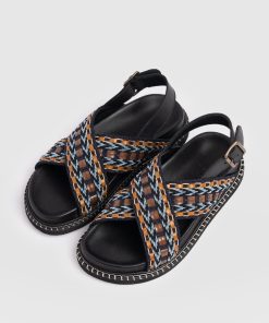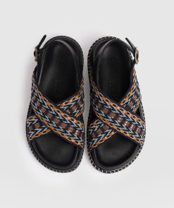 Meet the Bonnie Cross Over Sandals in Blue and Brown. This laid-back style is designed with coastal towns and sun-soaked cities in mind. Handmade by our skilled artisans using Portuguese leather, they’re shaped to a classic round-toe silhouette and feature cross-over raffia straps with a chunky sling-back fastening for all-day comfort. Wear yours with skirts, dresses, or trousers.
