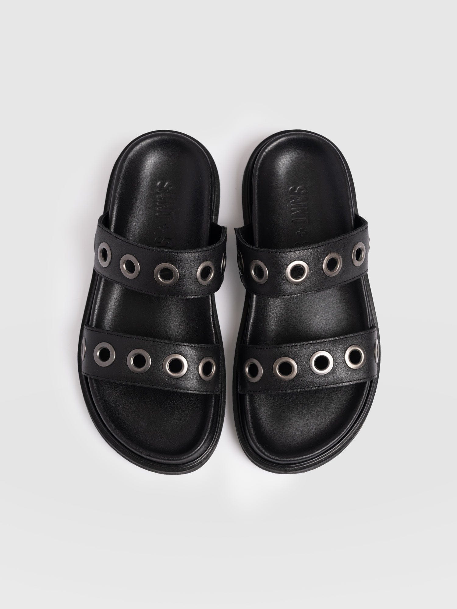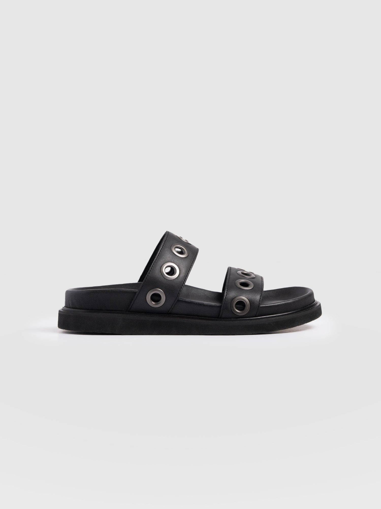 Searching for new slides to add to your collection? Look no further than the new Madison Eyelet pair. They’re handmade in Portugal using pure leather and shaped to a classic round-toe silhouette. At the top, two straps decorated with gunmetal eyelets add an on-trend edge to your look, while the cushioned sole provides ultimate comfort as you stroll. Wear yours with jeans, trousers, dresses, or skirts – the choice is yours.