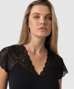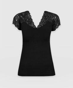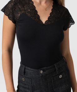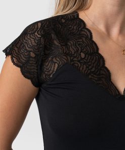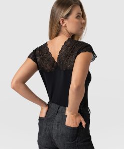 A chic jersey top with delicate lace trim in Black that’s perfect for work or weekends. This elegant top adds a touch of sophistication to any look, featuring a V-neck design that beautifully accentuates the neckline, while the fitted viscose body flatters your shape. Perfect for pairing with both casual and dressy looks, this top is a versatile style suitable for any occasion. Each top is handmade in Europe using a soft and sustainable eco viscose fabric. For a polished and chic look, style it with our Cambridge Tailored Pant and a pair of strappy heels.