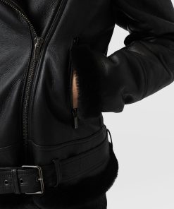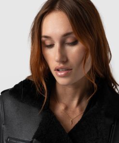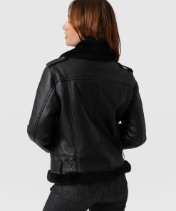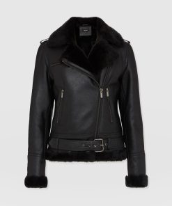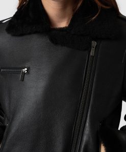 A classic aviator shearling jacket in black made with the softest, warming sheepskin leather. Relaxed, easy shape with belt detail on the hem for adjustment and epaulette detail on the shoulders. Gunmetal poppers and zippers. Each one is made by hand in our studios in Europe to guarantee the perfect fit and feel. We think you’ll be wearing this in years to come. Pair it with anything for a comfortable, chic look.