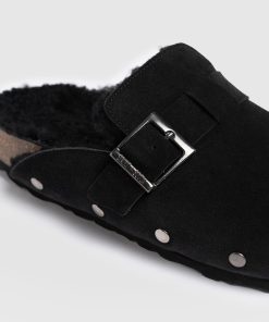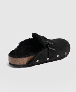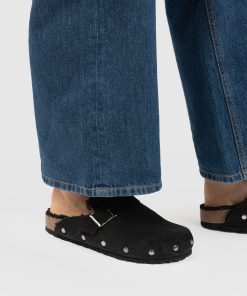 A slip-on clog handmade in Spain from pure leather, this pair in black is set to be your new everyday shoes. They’re shaped to a wide-fitting round toe and topped by a glimmering gunmetal buckle with matching studs around the trim. But the real star of the show? The sumptuously soft, shearling lining that feels delicately smooth on your skin as you stride. Style yours with skirts and pants for a casual ensemble.