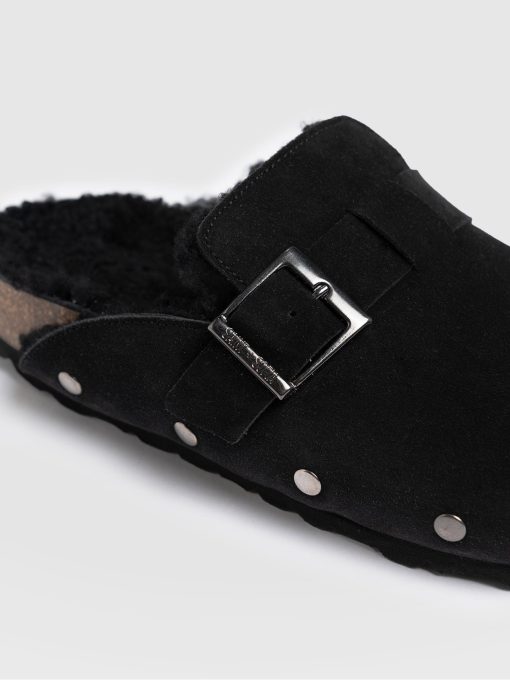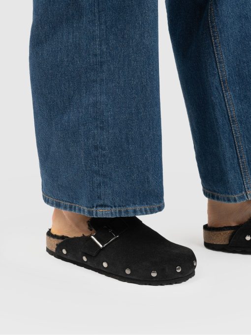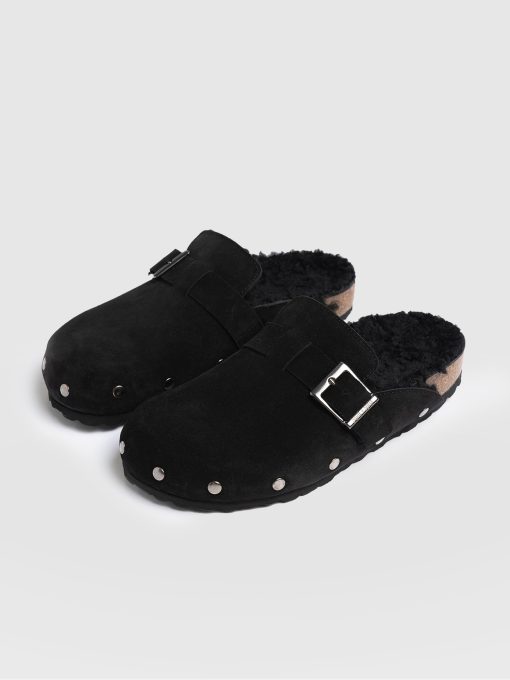 A slip-on clog handmade in Spain from pure leather, this pair in black is set to be your new everyday shoes. They’re shaped to a wide-fitting round toe and topped by a glimmering gunmetal buckle with matching studs around the trim. But the real star of the show? The sumptuously soft, shearling lining that feels delicately smooth on your skin as you stride. Style yours with skirts and pants for a casual ensemble.