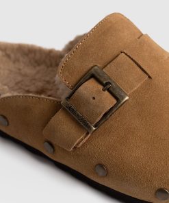 A slip-on clog handmade in Spain from pure leather, this pair in tan is set to be your new everyday shoes. They’re shaped to a wide-fitting round toe and topped by a glimmering gunmetal buckle with matching studs around the trim. But the real star of the show? The sumptuously soft, shearling lining that feels delicately smooth on your skin as you stride. Style yours with skirts and pants for a casual ensemble.