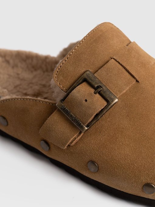 A slip-on clog handmade in Spain from pure leather, this pair in tan is set to be your new everyday shoes. They’re shaped to a wide-fitting round toe and topped by a glimmering gunmetal buckle with matching studs around the trim. But the real star of the show? The sumptuously soft, shearling lining that feels delicately smooth on your skin as you stride. Style yours with skirts and pants for a casual ensemble.