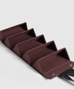 If your sunglasses collection is starting to overflow with designs, you’ll need a place to store your frames. Luckily, our Multi Case offers a chic style solution for displaying multiple pairs of protective shades. Handmade using croc-embossed leather, this case can be rolled closed or hung by the top handle and unravelled to reveal five slots for your glasses. We’ve also lined the interior with a velvet red microfibre to keep your sunglasses cushioned and their lenses scratch-free.