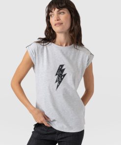 A classic, comfortable crew neck tee in grey with rock and roll print detail. Designed for a relaxed, easy fit and with signature button detail on the shoulders. Each one is handmade in Europe using the softest eco viscose fabric for the perfect fit and feel that’s true to size. Pair it with jeans, leggings or skirts on warmer days.
