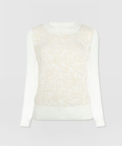 Introducing: The Wren Long Sleeve Knit, the ultimate A/W wardrobe staple. This cream design features a sweater vest-inspired bodice with a floral jacquard finish complete with slim-fitting long sleeves for a layered look. It’s handmade from sumptuously smooth cotton yarn and infused with a hint of stretch for all-day comfort. Style yours with wide-leg trousers or over skirts for a seasonal look.